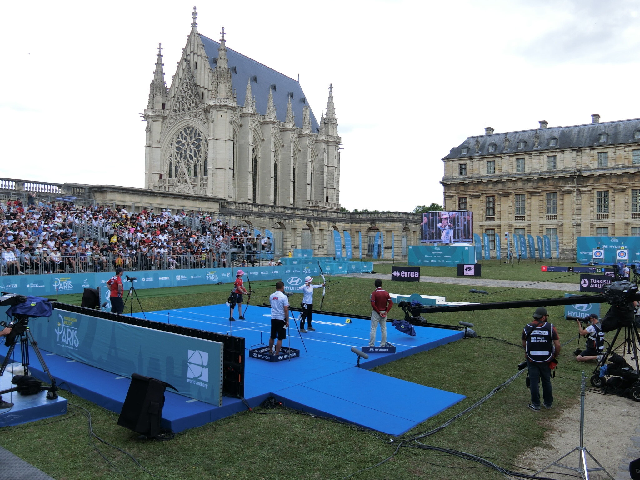 予選ラウンドの上位16チームによるトーナメント戦で、リカーブ部門は1セット4射の4セット制、コンパウンド部門は1エンド4射で4エンドの合計得点制で勝敗を競います。リカーブ部門、コンパウンド部門とも、それぞれの団体戦と同じ距離と標的を使用して実施されます。